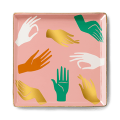 Crafted with utmost care and attention to detail, each tray is made from high-fired ceramic, ensuring its durability and timeless charm. The delicate Hamsa print is further enhanced by the hand-applied gold glaze, giving it a luxurious and captivating appeal.
