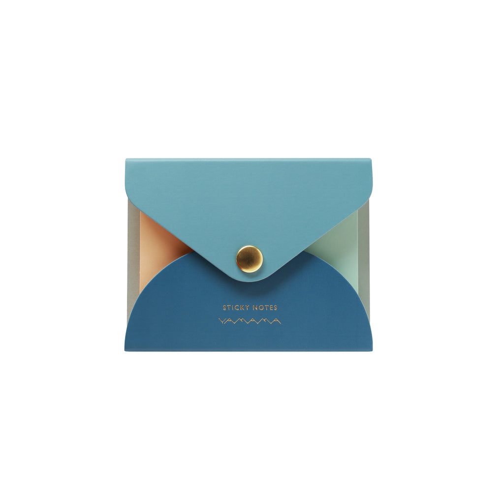 These Yamama sticky notes come in a sleek cardboard wallet with post-it notes in pastel colours. Designed and made in Tokyo from high-quality Japanese materials, each wallet has a button close and gold foil detail.