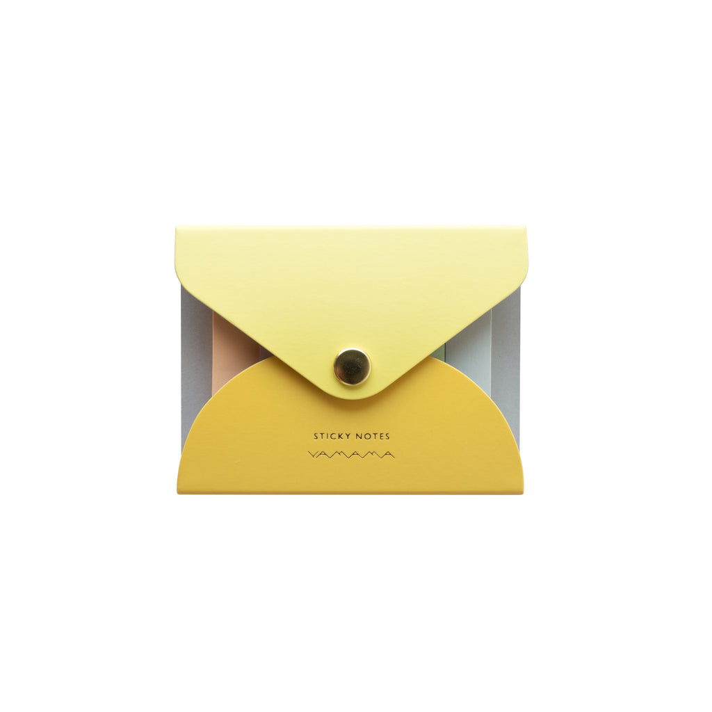 These Yamama sticky notes come in a sleek cardboard wallet with post-it notes in pastel colours. Designed and made in Tokyo from high-quality Japanese materials, each wallet has a button close and gold foil detail.