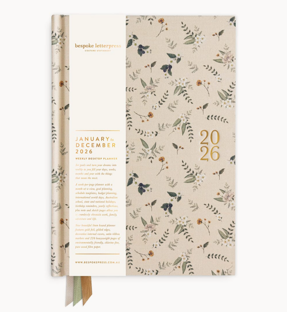 Pre-order: Bespoke Letterpress 2026 Desktop Linen Bound Weekly Planner in Button Fern